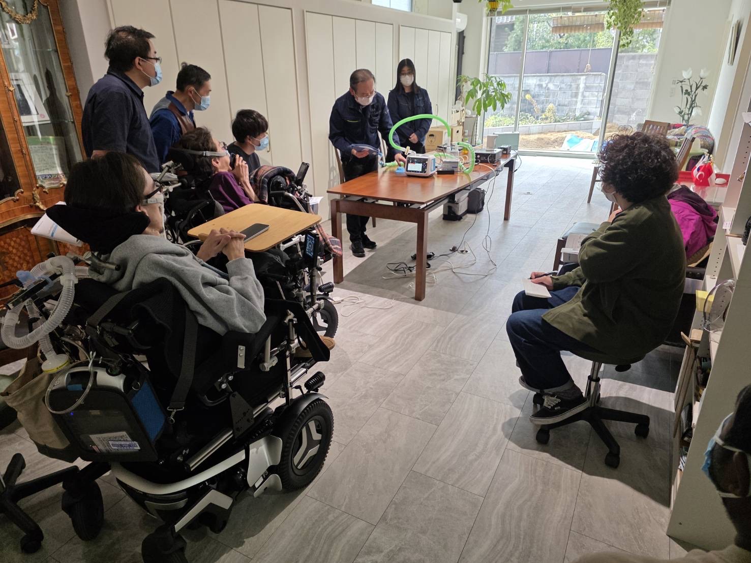 今回は、医療機器取り扱い会社の株式会社Kistさんをお招きし、最新の人工呼吸器について学びました。人工呼吸器といっても種類はさまざまで、利用者さん一人ひとりの身体状況に合わせて選択や設定が必要になります。そのため、日々のケアを安心して行うには、正しい知識をしっかり身につけ、機器ごとの特徴を理解しておくことがとても大切です。